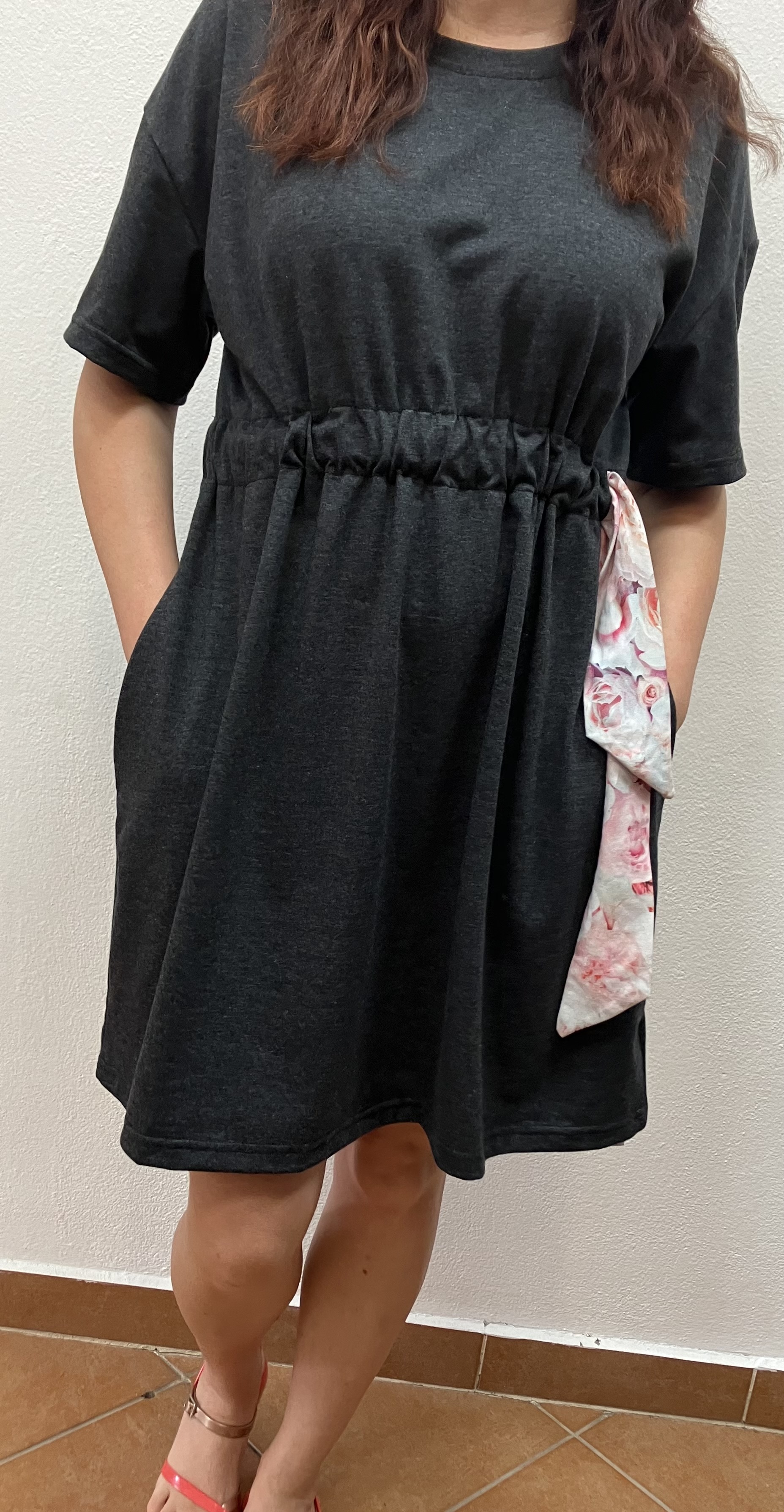 Dámske šaty krátky rukáv s opaskom. Yloženie materiálu : 95%bavlna 5% lycra